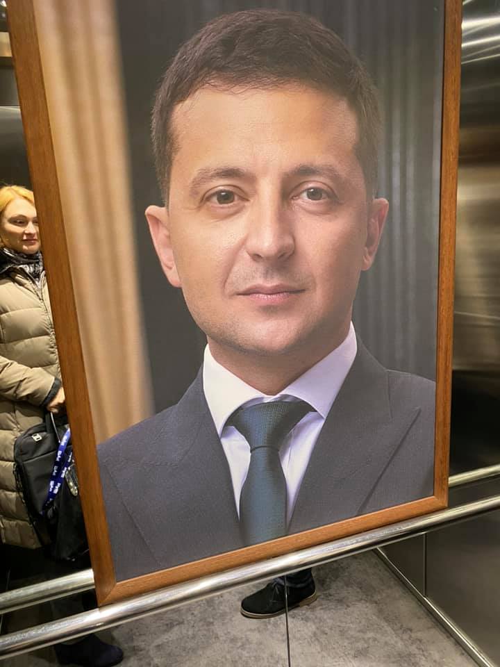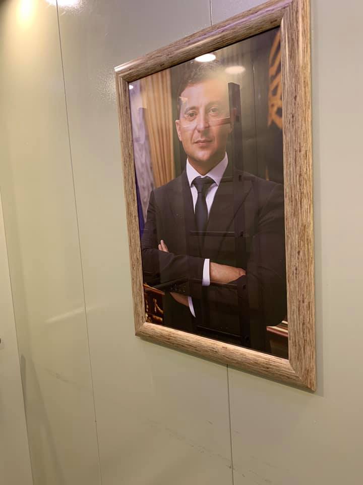 Для портретов с изображением президента Украины Владимира Зеленского находят необычные места. В среду, 12 февраля, один из них был обнаружен в лифте телеканала "НАШ", который принадлежит экс-нардепу от "Оппоблока" Евгению Мураеву.