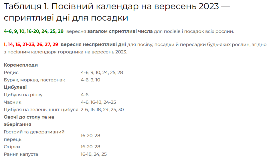 Ресурс "Зелена садиба" публикует подробный посевной календарь на сентябрь 2023 года.