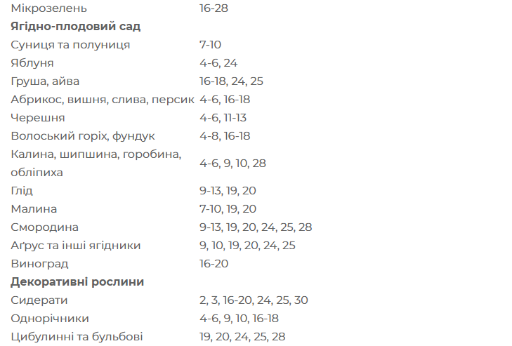 Кроме того, плодовые деревья нужно обязательно подкормить фосфорно-калийными удобрениями, а также 2, 3, 16-20, 24, 25 и 30 числа посеять сидераты.
