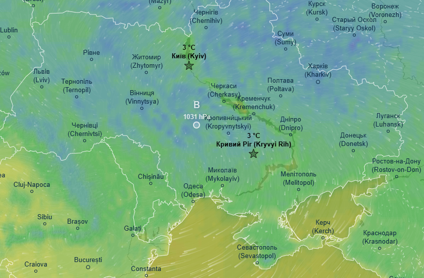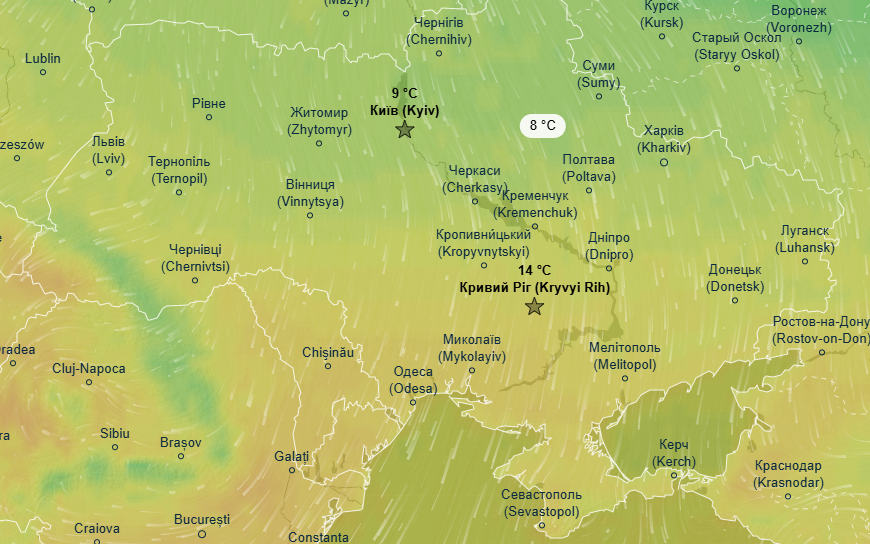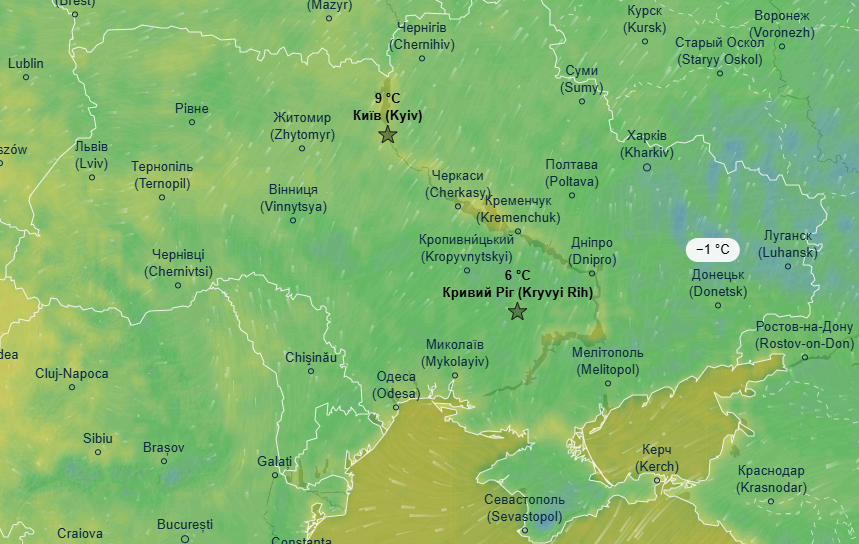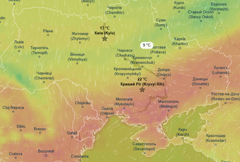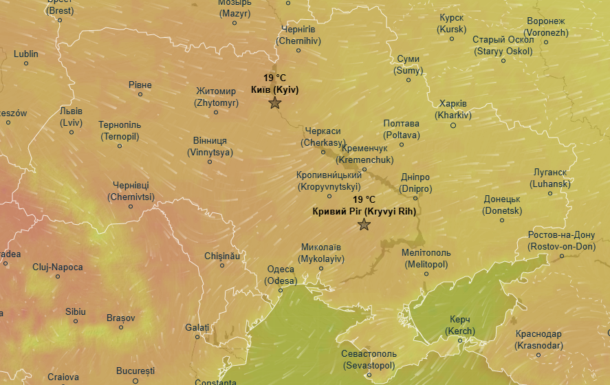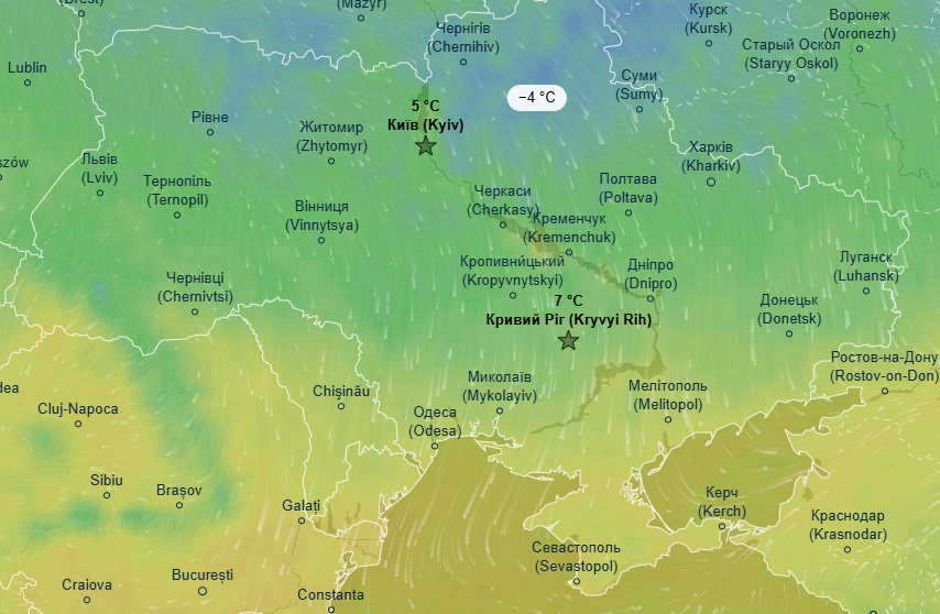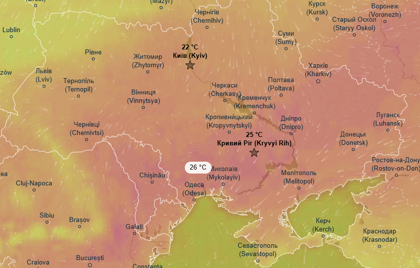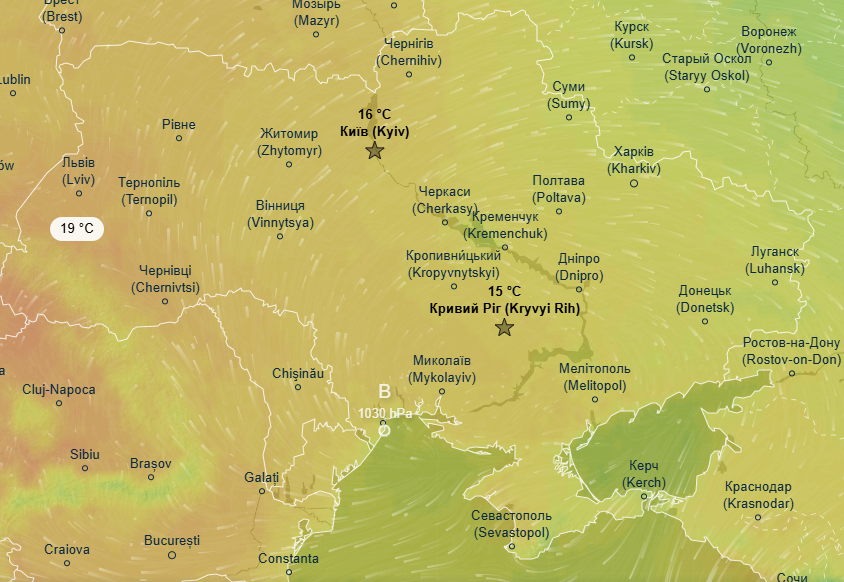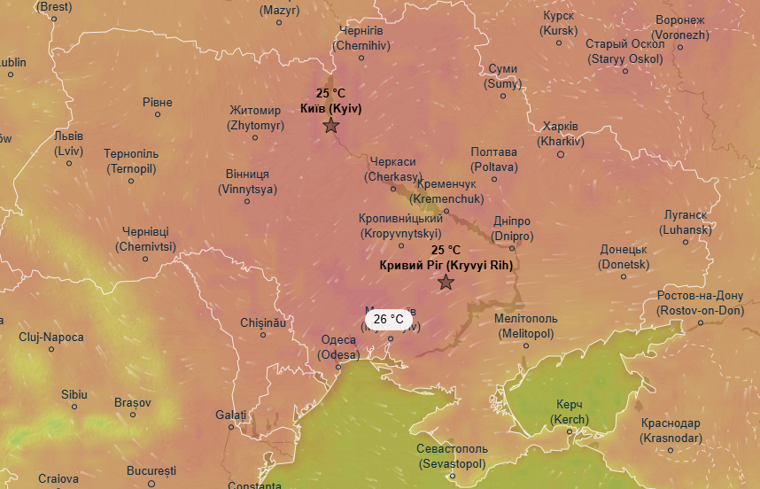 Об этом говорится в прогнозе метеоресурса Ventusky.