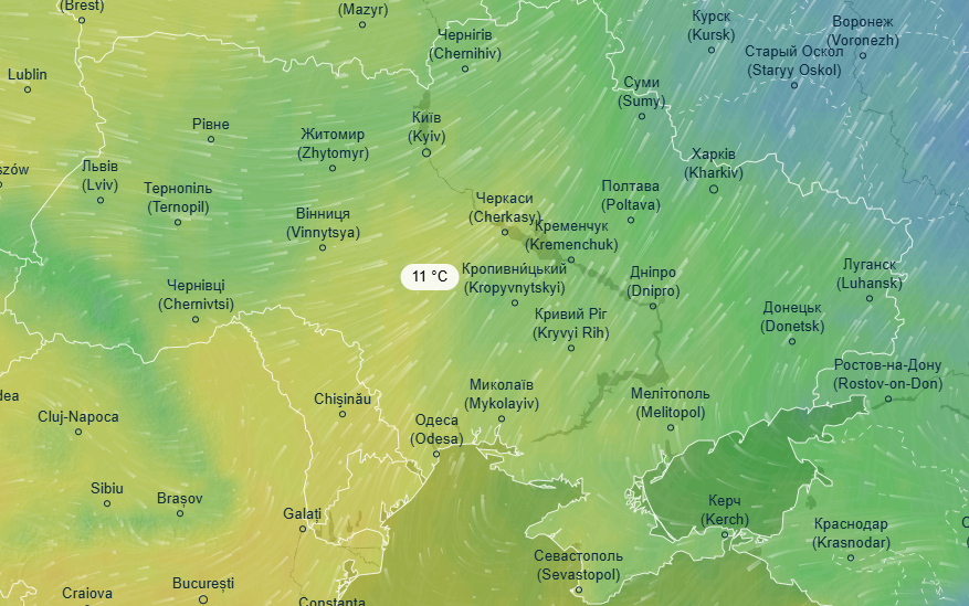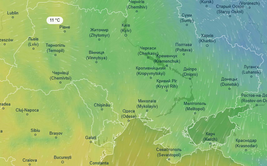 В субботу, 9 ноября, теплее всего в Украине будет в южных областях - на Запорожье, Николаевщине и в Одесской области воздух прогреется до 14 градусов с отметкой "плюс". На остальной территории Украины от +7 до +11 градусов днем.