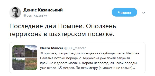 "Последние дни Помпеи. Оползень террикона в шахтерском поселке", - написал он.