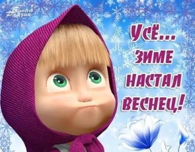 Сегодня последний день зимы. Вот и пролетели три ее месяца, насыщенные праздниками и весельем. Позади Новый год, Рождество, Крещение, 14 и 23 февраля, Масленица, а впереди весна, и пусть она будет не менее шумной, радостной и богатой событиями, чем зима.