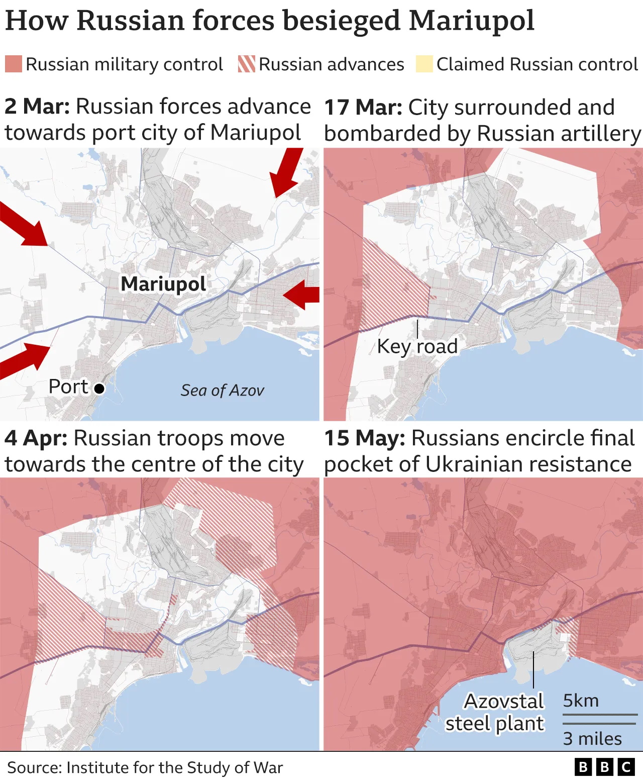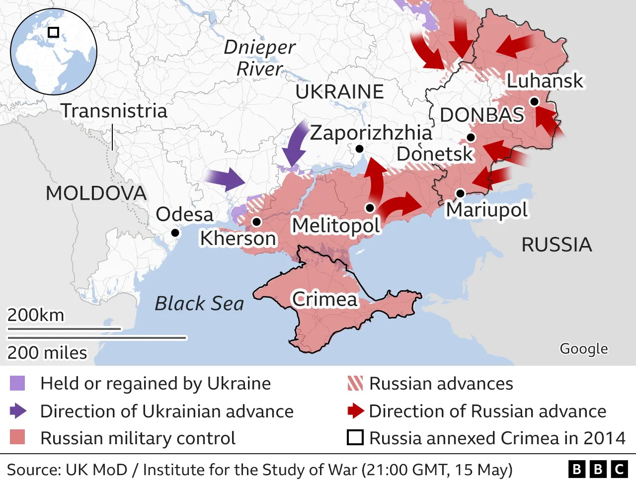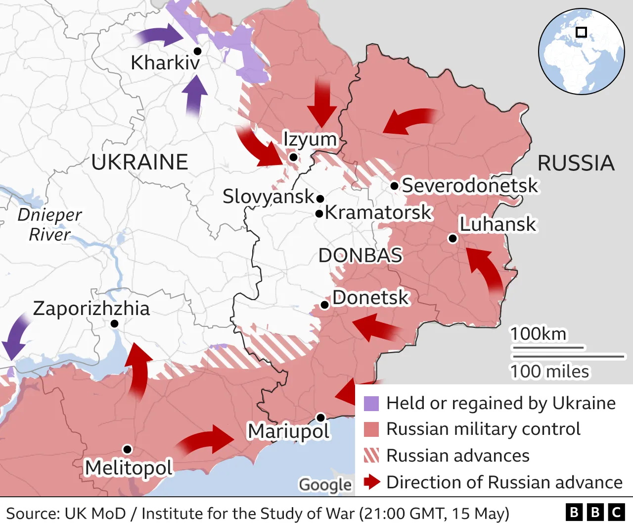 Карты боевых действий по состоянию на 17 мая опубликовало BBC.