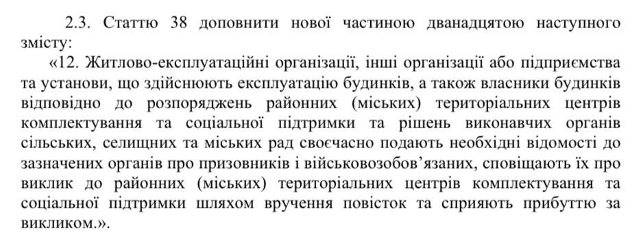 Народные депутаты Украины, в целях улучшения показателей мобилизации, планируют коммунальщикам и владельцам домов предоставить право вручать повестки и собирать информацию для ТЦК о военнообязанных мужчинах.