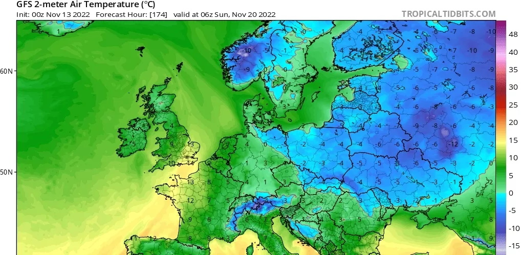 По словам синоптика Игоря Кибальчича, со среды, 16 ноября, ожидается формирование небольшого циклона по типу "ныряющего", который по нисходящей ветви высотной фронтальной зоны опустится с Финляндии до северных и восточных границ Украины. Атмосферные фронты данного циклона принесут осадки преимущественно в виде мокрого снега с дождем, а также дальнейшее понижение температуры воздуха практически по всей Украине.