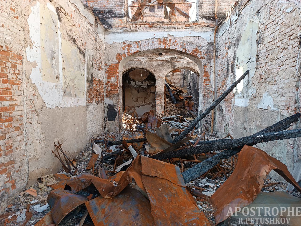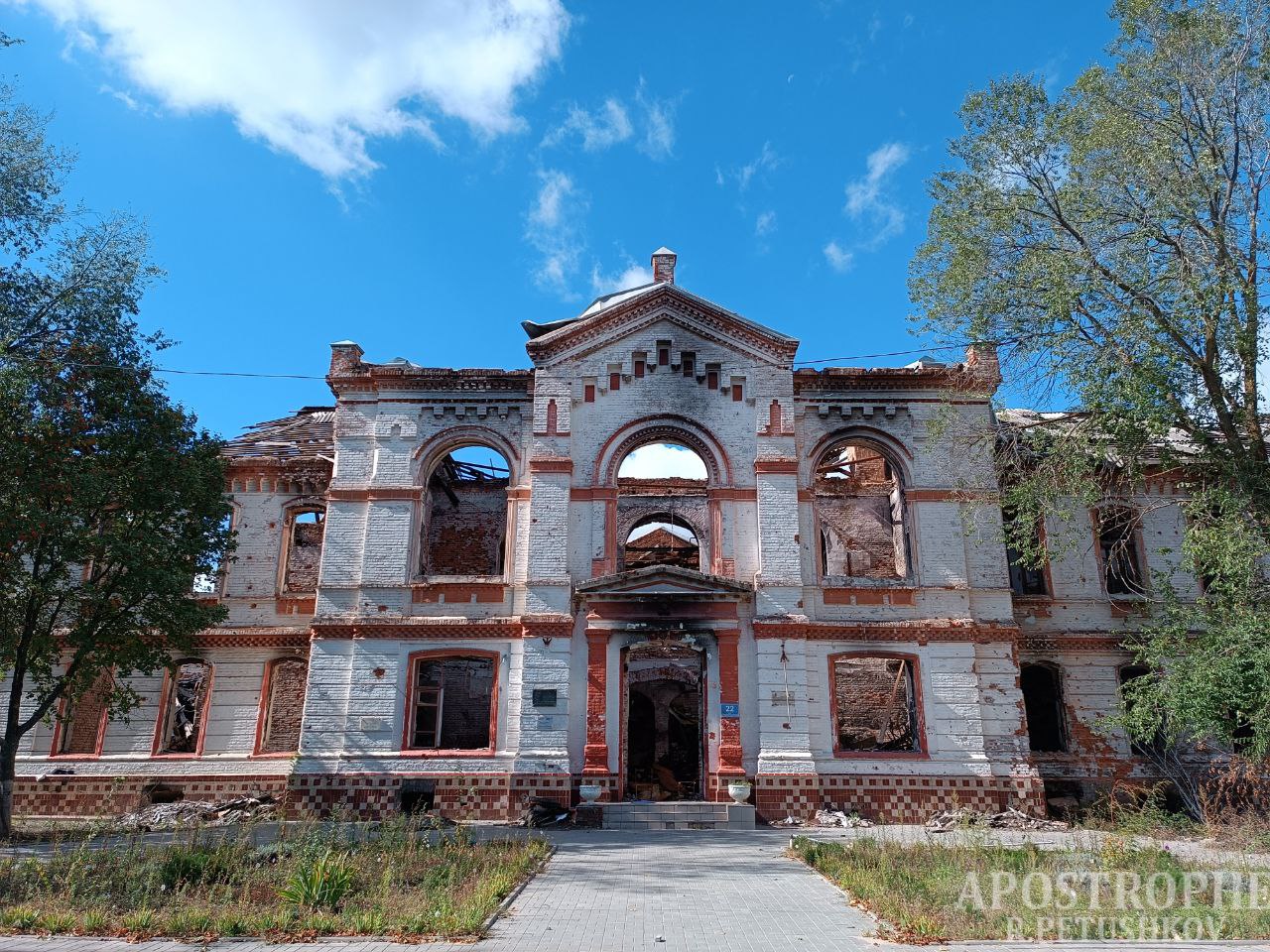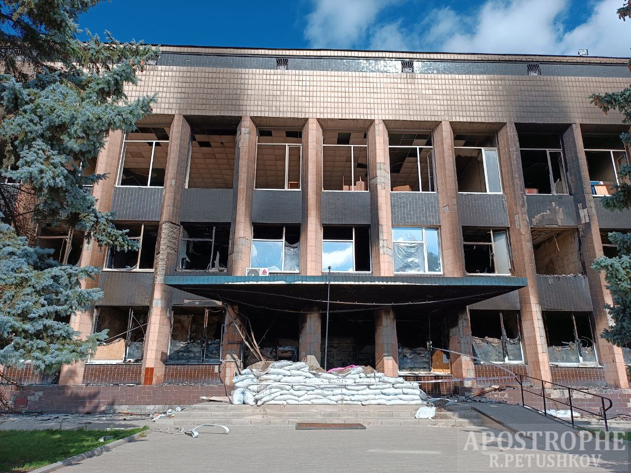 В городе не осталось школ, сообщает Роман Петушков. Оккупанты даже уничтожили настоящее украшение города, историческое здание Изюмского лицея, который полностью выгорел и остался только фасад .