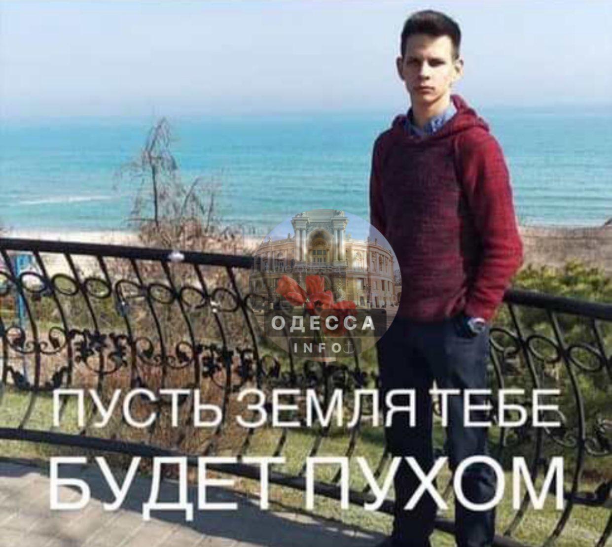 Фото погибшего юноши с надписью "Пусть земля тебе будет пухом" опубликовано в Telegram-канале "Одесса INFO".