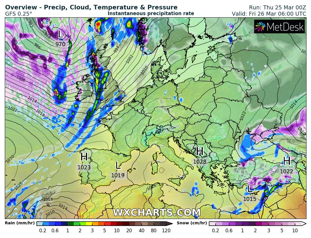 Ветер будет северного направления, умеренный. В южной части страны и на юго-востоке прогнозируют осадки в виде дождя и мокрого снега. Но днем осадки будут лишь на крайнем юге. На значительной части Украины ожидается антициклон Margarethe, который принесет сухую погоду.