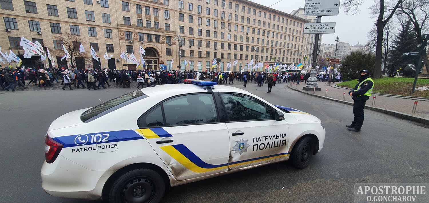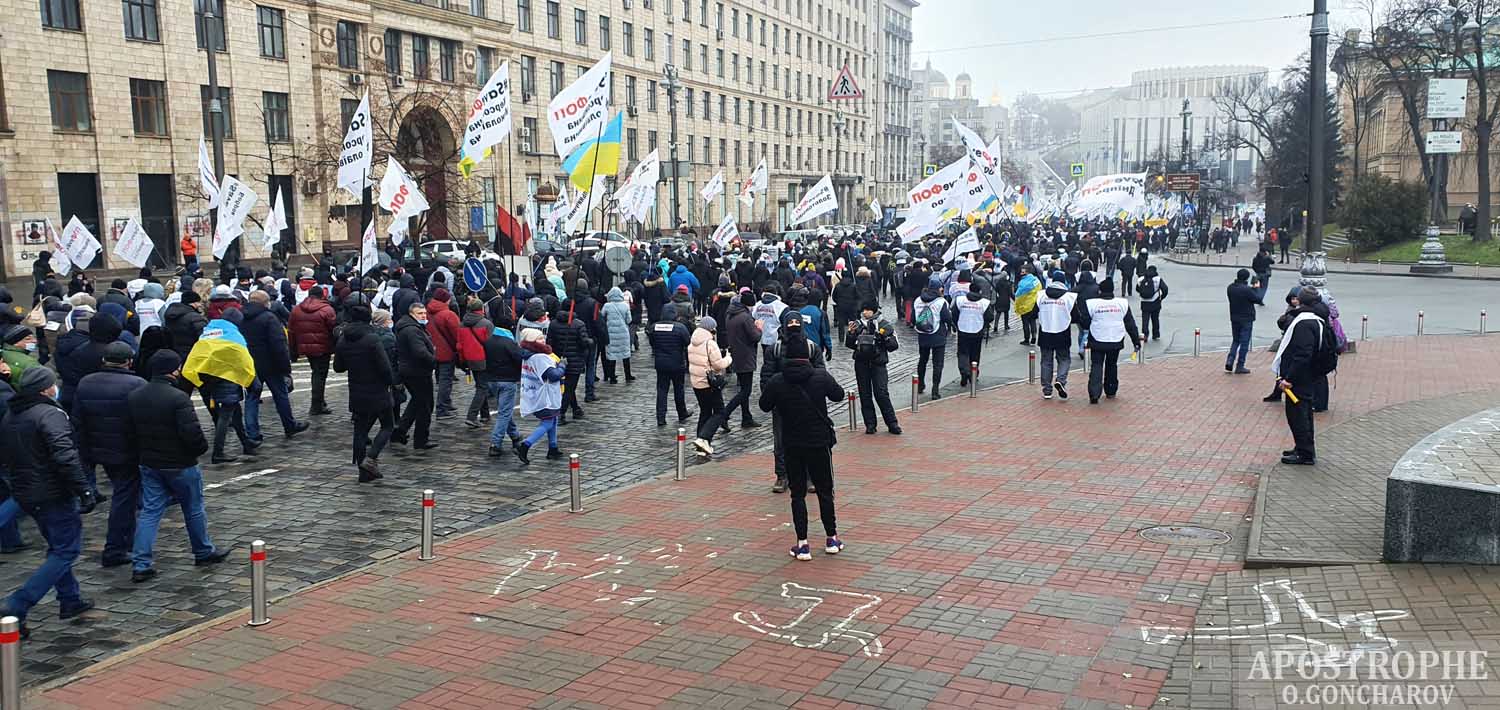 Протестующие идут по улице Михаила Грушевского к Офису Президента Украины, на улицу Банковую. Предприниматели пройдут по Крещатику и по улице Институтской поднимутся к зданию.