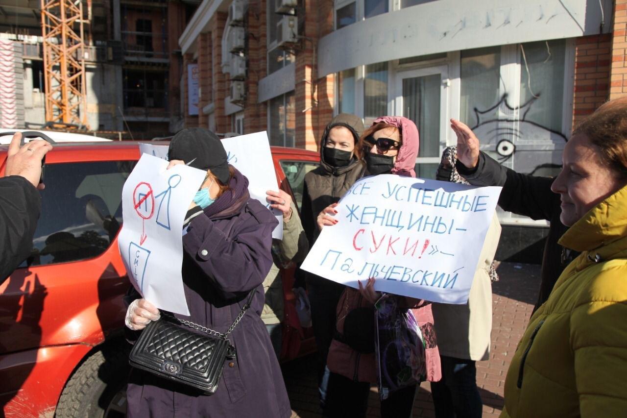 По словам участниц акции, они наткнулись на ряд нетолерантных высказываний Пальчевского в адрес женщин.