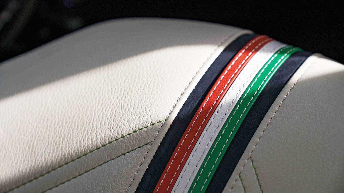 Авто получило окрас в цвета итальянского флага, который сделали сбоку. Салон отделали также местами в данном окрасе, но в бело-синих тонах. Интерьер разбавили вставками из авиационного алюминия. Для декора оснастили машину внутри и трубкой Пито, анемометром.