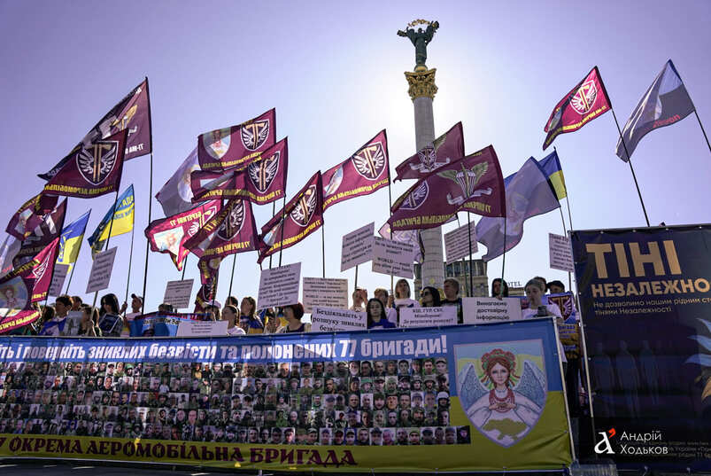 В центре столицы прошла мирная акция протеста под красноречивым лозунгом: "Президент! Услышьте нас!". Ее инициировали семьи пропавших без вести и военнопленных 77-й отдельной аэромобильной бригады, объединившихся в общественную инициативу "Берегини 77". К ним присоединились представители сотен других бригад со всей Украины.