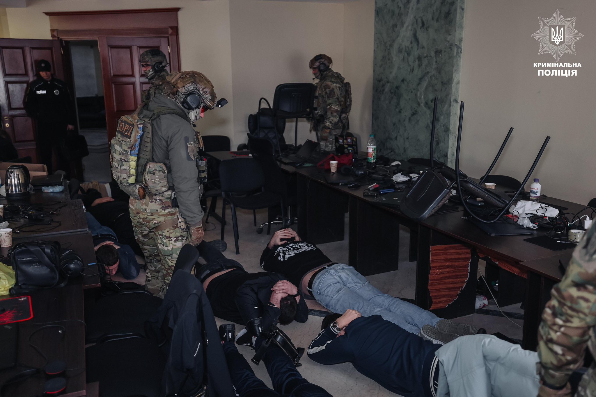 Правоохранители в Днепре задержали восемь организаторов и руководителей. Также установлена вся вертикаль от управленцев, формировавших стратегию и державших финансовые потоки, до тимлидов, контролировавших персонал, а также линейных исполнителей — технарей, операторов колл-центров.