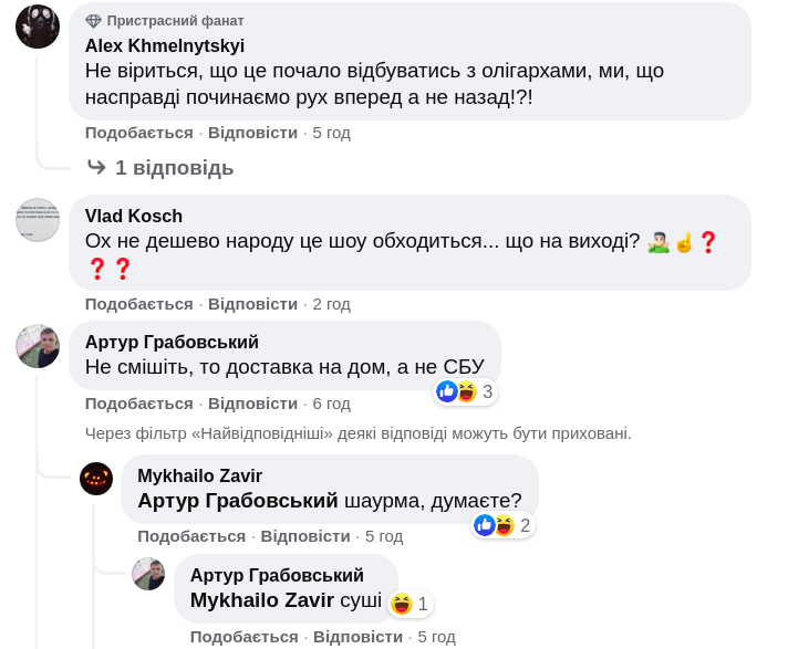 "Показуха", "Прикольно, кофе пить приехали?", "Приехали в гости", "Конец эпохи бедности", "Не смешите, это доставка на дом, а не СБУ", "Ох недешево народу это шоу обходится ... Что на выходе?", - пишут пользователи.