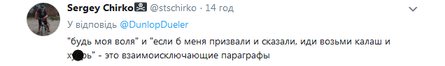 "Этот бухой московит очень хочет прийти в Киев и покосить всех из пулемета! Если бы ему дали свободу. Не будет тебе свободы!", - пишет блогер.