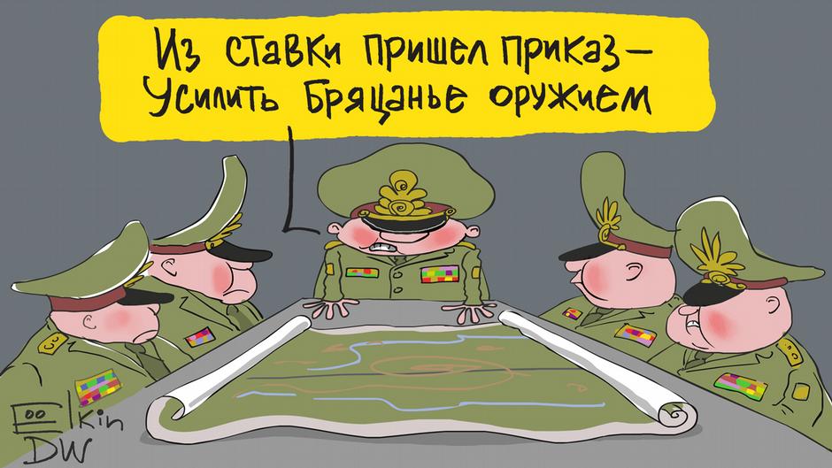 "Повышенная концентрация российских войск у границы с Украиной вызвала беспокойство не только в Киеве. Цель маневра - сменить повестку дня, чтобы отвлечь от других проблем?", - предположили журналисты, публикуя карикатуру в своем микроблоге Twitter.