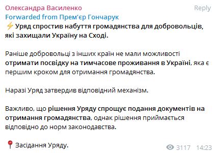 Ранее добровольцы из других стран не имели возможности получить вид на жительство в Украине, которое является первым шагом для получения гражданства.