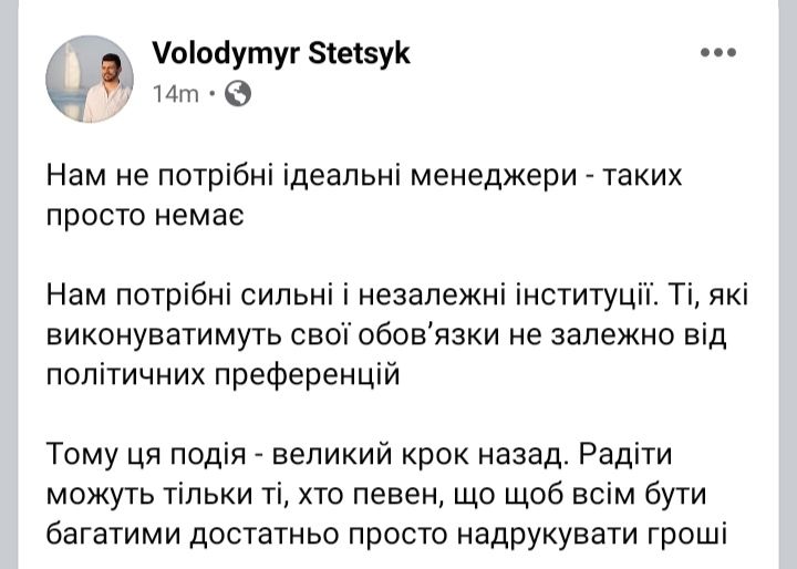 В соцсети он написал: "Поздравляю Игоря Коломойского. Это его победа. Владимир Зеленский сделал все, что от него зависило, чтобы это случилось. Его тоже поздравляю. Празднуйте! Воруйте! Радуйтесь!".