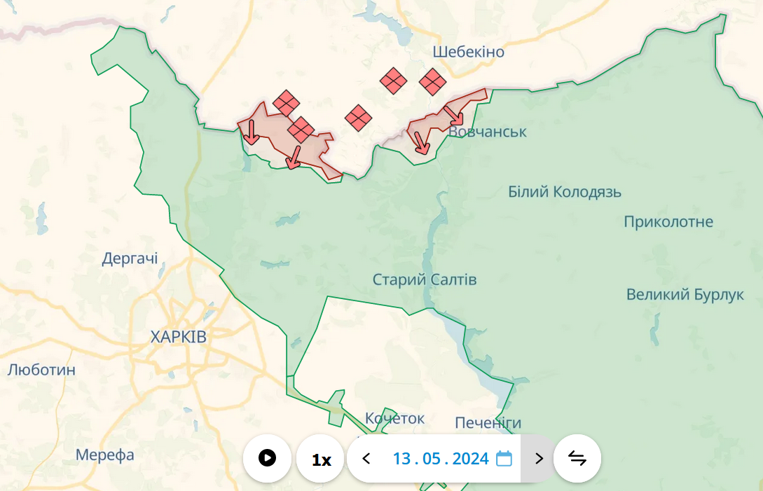 Ситуацию на Харьковском направлении прокомментировал президент Владимир Зеленский. По его словам, о самых горячих точках фронта по состоянию на 13 мая доложили главнокомандующий ВСУ Александр Сырский и министр обороны Рустем Умеров. Согласно оперативной информации, в регионе продолжаются контрударные действия украинских сил. Данное направление, в частности, Волчанск и приграничные районы, было усилено.