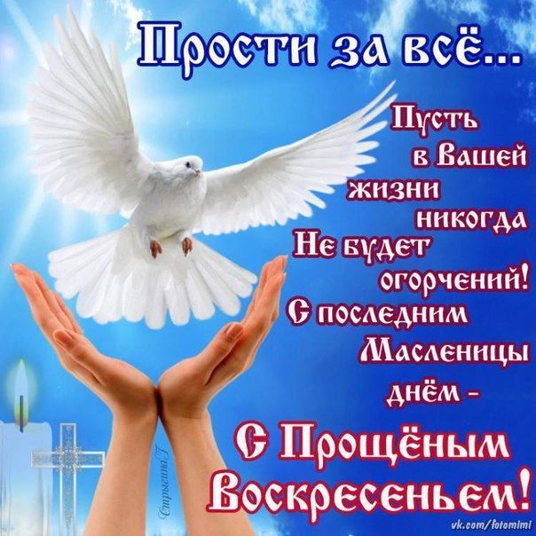 С Прощеным воскресеньем! Пусть этот день принесет прощение и мир в дом, подарит здоровье, терпение, умение сочувствовать и прощать друг друга!