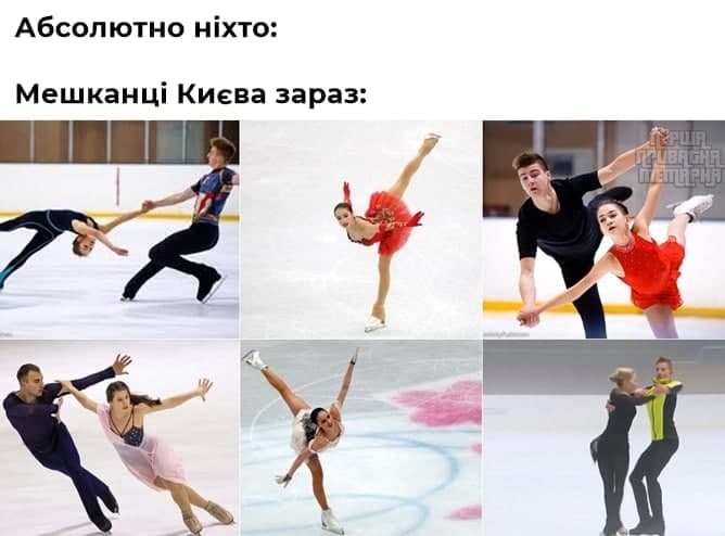 Авторы курьезных картинок решили провести параллели между жителями Киева, которые несколько дней страдали из-за гололеда на дорогах, с профессиональными фигуристами на льду.