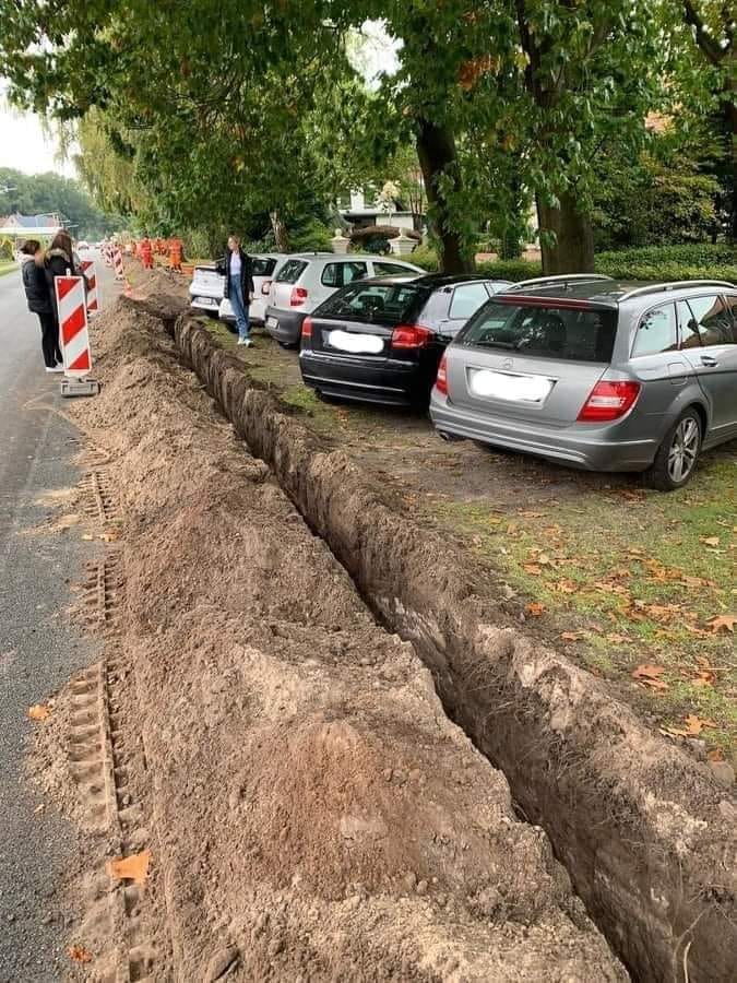 Так, пользователь опубликовал фото, на котором видно 5 припаркованных на зеленой зоне автомобилей. Вдоль "парковки" появился длинный ров - видимо, коммунальщики постарались, пока автомобилистов не было. Автор предполагает, что ров вырыли сотрудники ДТЭК "Киевские электросети".