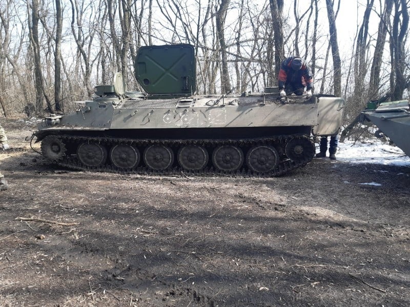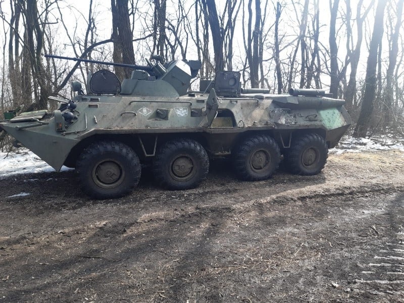 На фотграфиях, запечатленных с места событий, видно брошенную врагом военную технику. В частности украинскими десантниками были захвачены МТ-ЛБ и несколько БТРов.