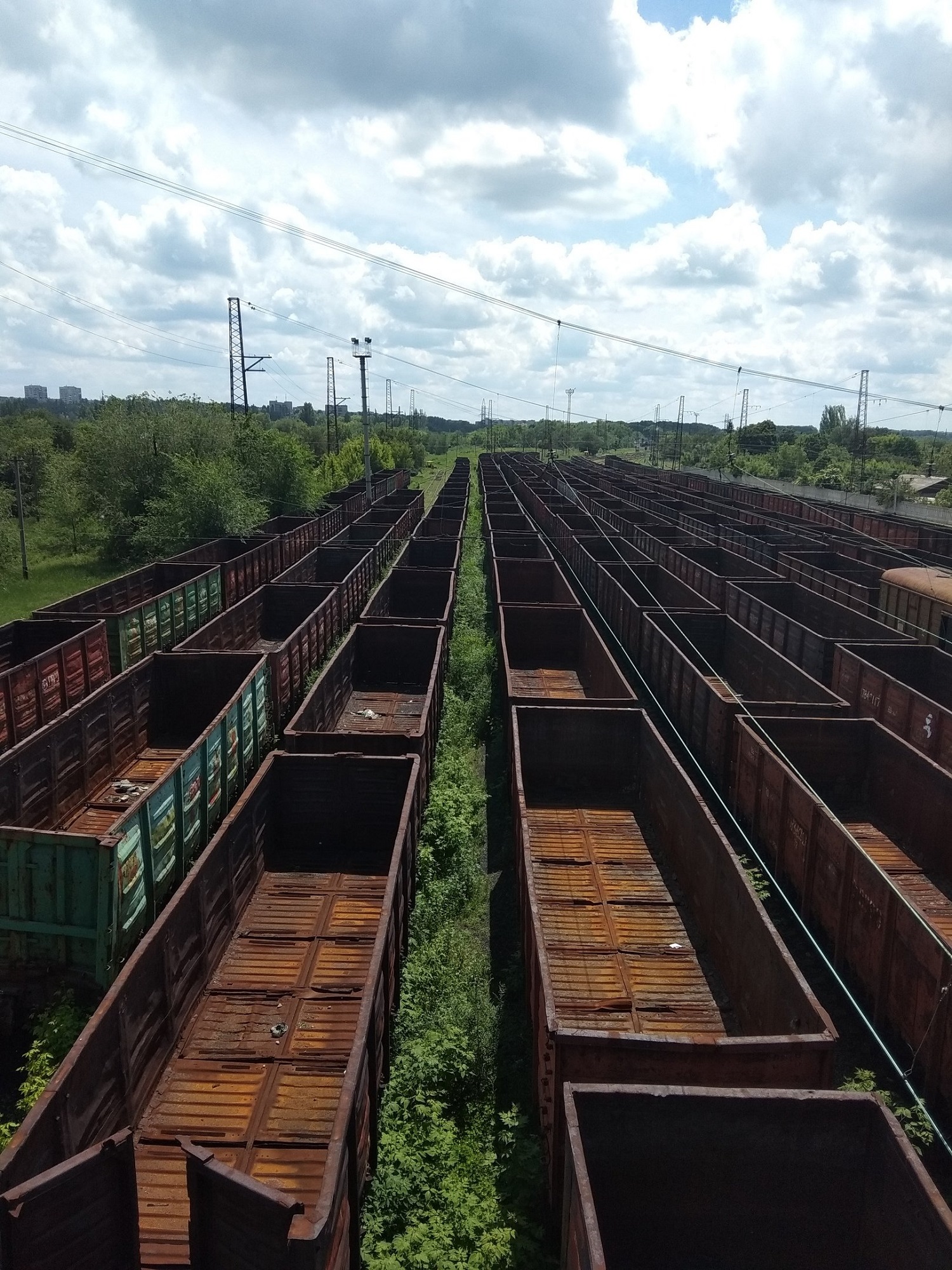 "Рутченково. Уже деревья пробиваются между составами", - говорится в подписи к снимкам.