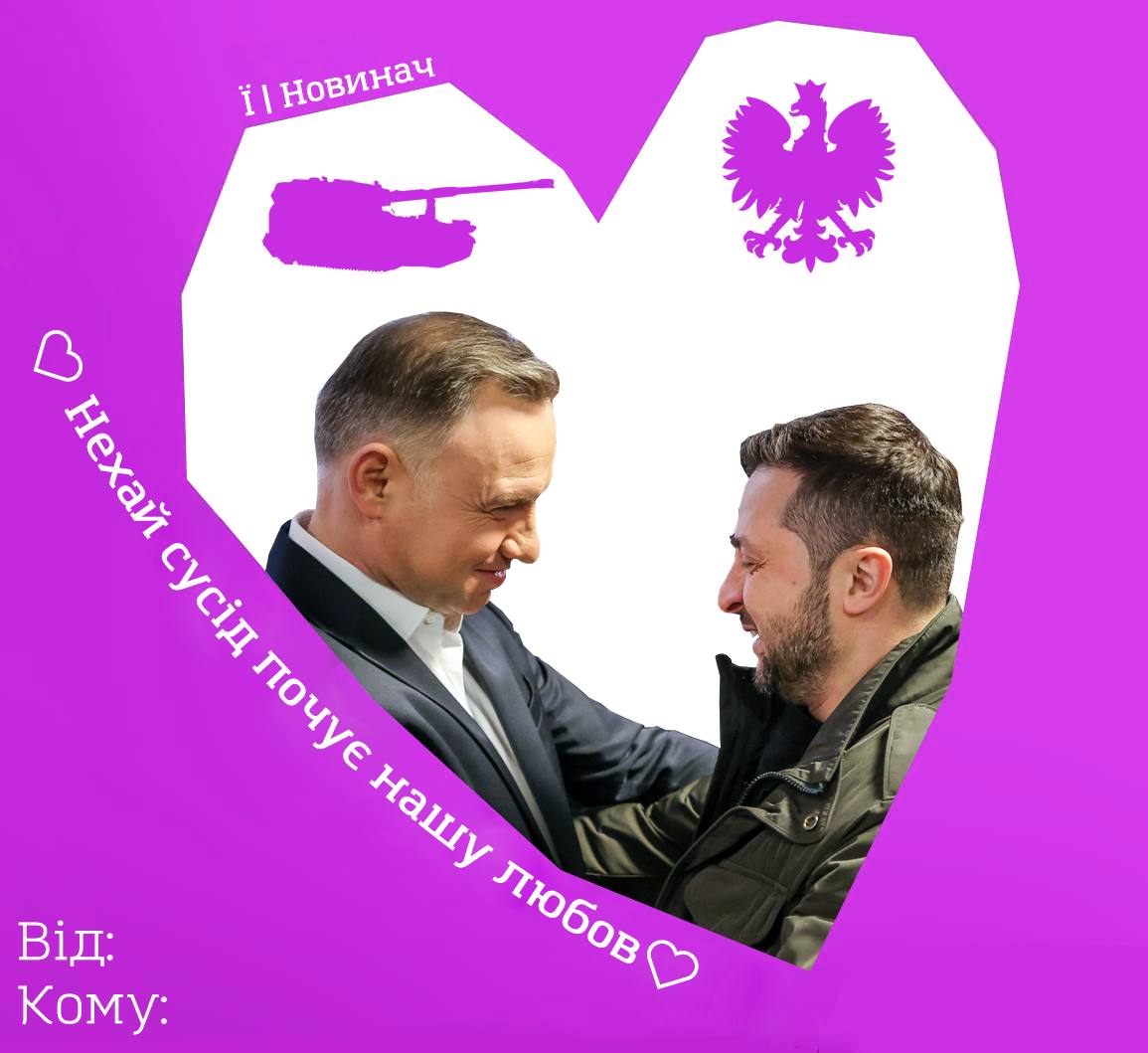 Так, в частности, украинцы поместили на открытки главнокомандующего ВСУ Валерия Залужного, объятия президента Владимира Зеленского со своим польским коллегой Аджейем Дудой, американского лидера Джо Байдена.