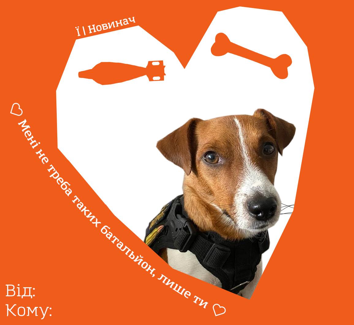 Также на валентинку попал и служебный пес-сапер Патрон, снискавший международную популярность во время вторжения России в Украину.