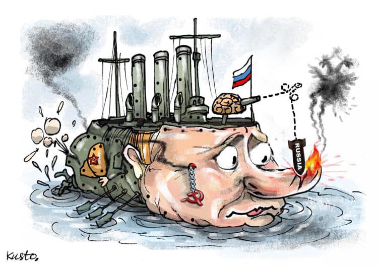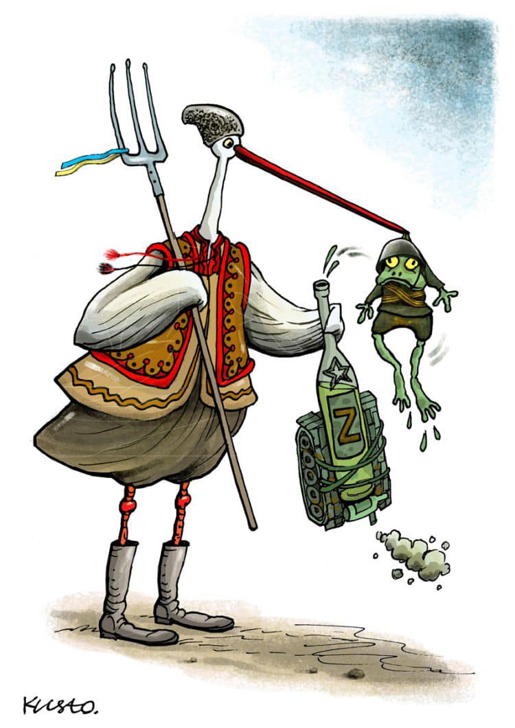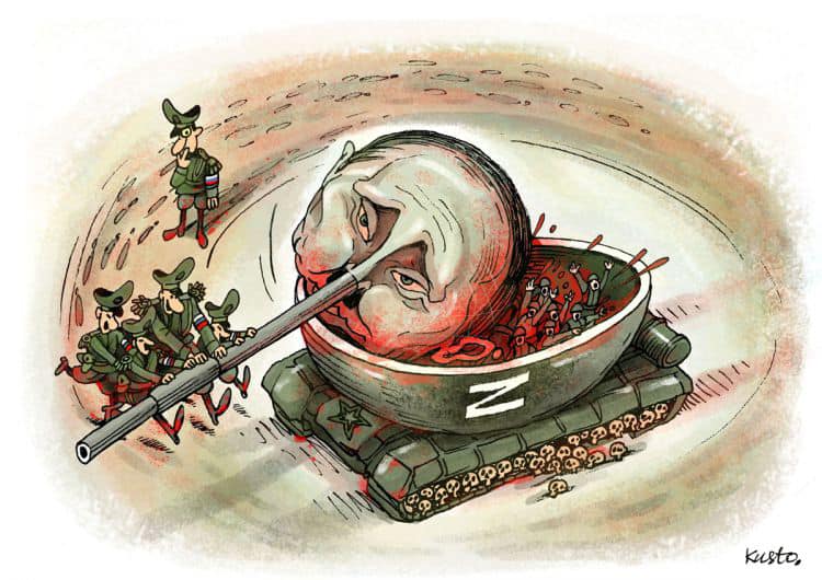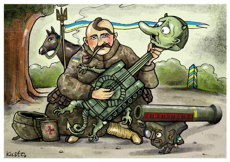 Другие карикатуры также освещают кровавый режим Путина и победу добра над злом.
