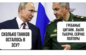 Актуальными также являются картинки о провале плана Путина "взять Киев за три дня", где не забыли упомянуть министра обороны России Сергея Шойгу, а также цыган, которые украли рашистский танк.