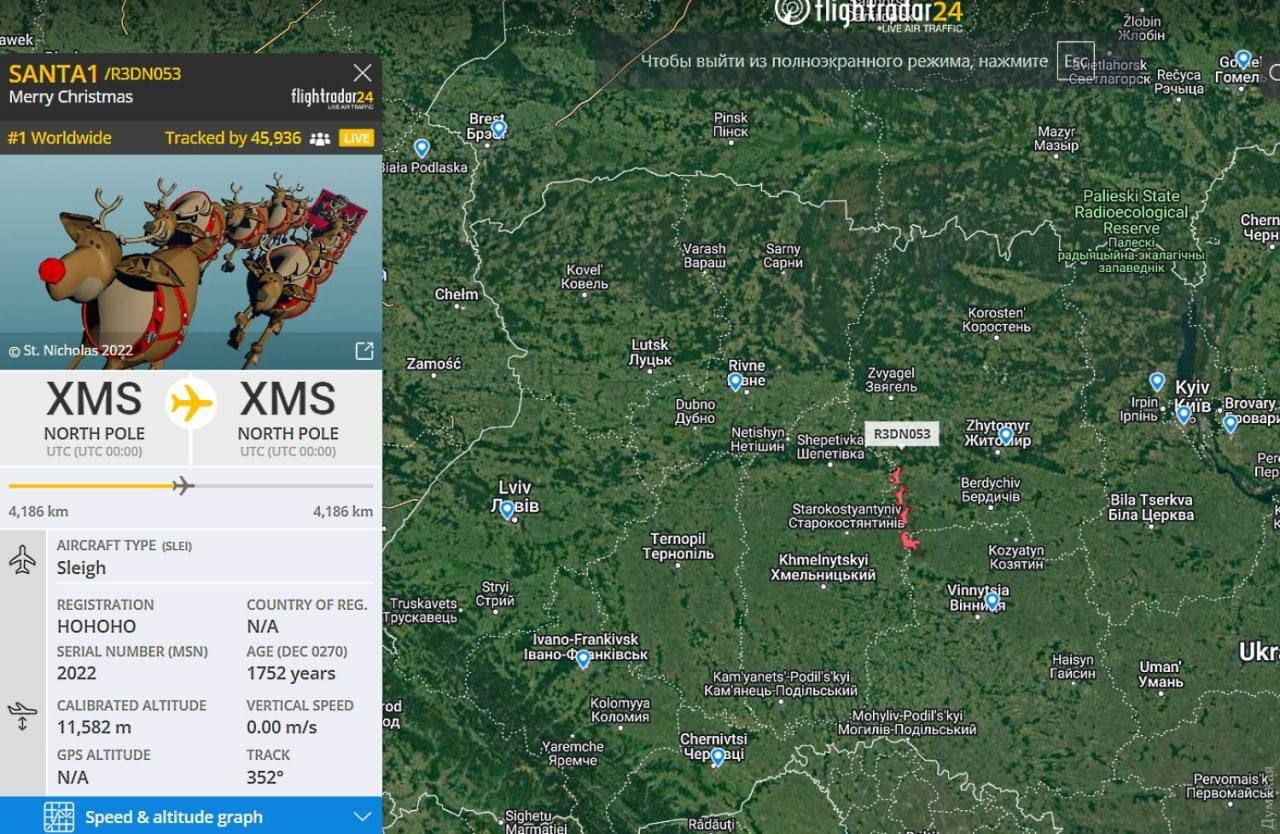 Как пишет "Апостроф", "кортеж" Санты заметили и над территорией Украины, где с 24 февраля из-за полномасштабного вторжения России, запрещены полеты гражданской авиации.