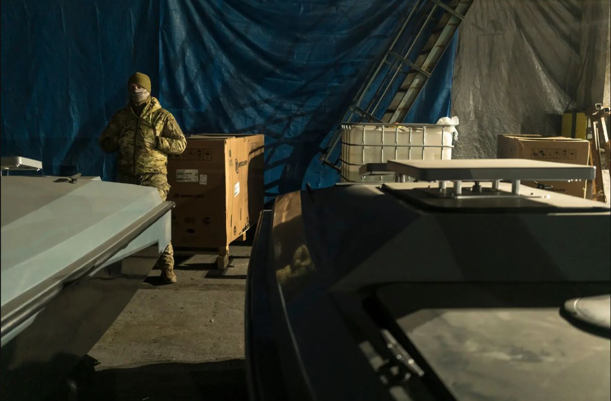 Журналисту американского издания показали складское помещение, где на тележках лежали десятки скоростных катеров на разных стадиях сборки, выкрашенных в серый и черный цвета, чтобы их было труднее заметить в море и ночью.