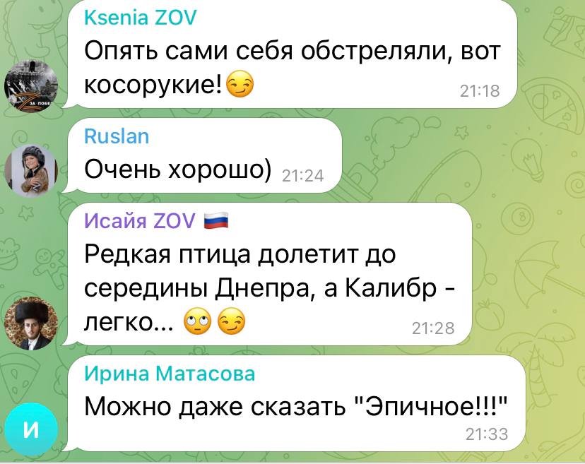Нелюди писали о том, что любят смотреть на такое "крОсивое", называли обстрел эпичным и утверждали, что "косорукие" украинцы снова обстреляли сами себя.