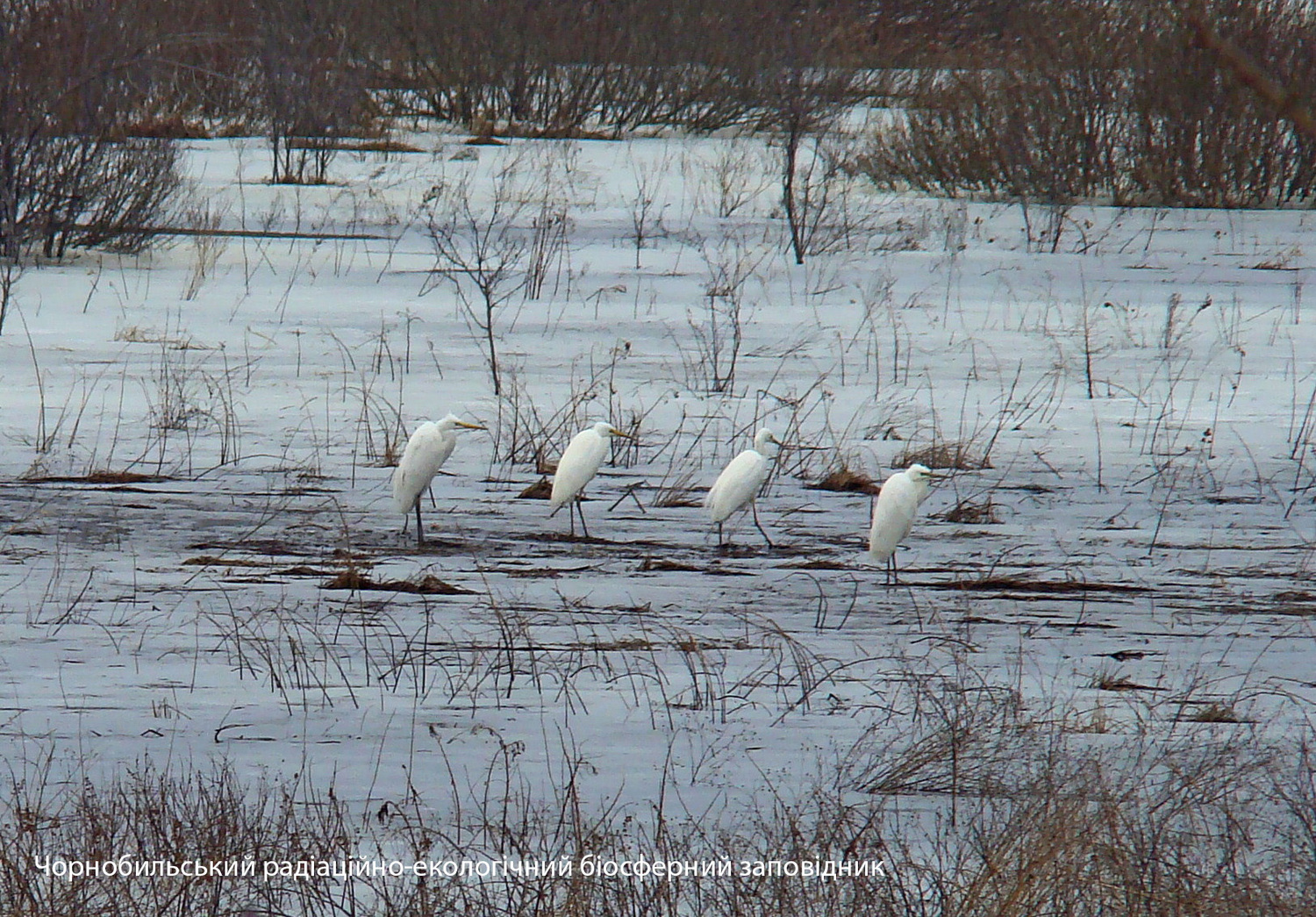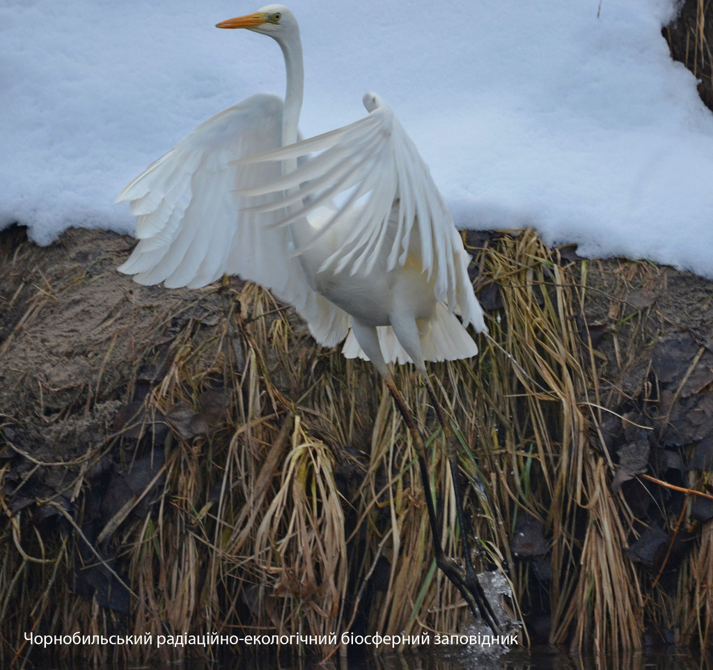 В разгар зимы в Чернобыльской зоне отчуждения гнездятся красивые птицы - белые цапли.