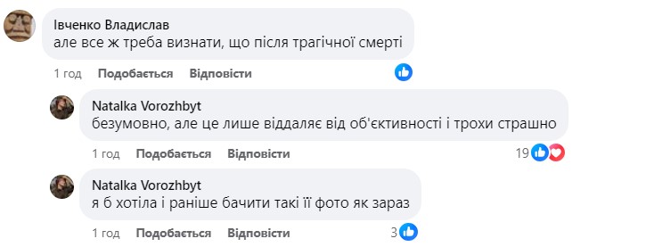 "Так я узнала, что при жизни можно быть бабой Ягой, агрессивным монстром, мымрой с перекошенным от злобы лицом, а после смерти превратиться в красивую, стройную, глубокую и нежно-трогательную женщину. Это я о феномене фотоперевоплощения в сетях одной покойницы и о бесконечных манипуляциях с нашим сознанием", – отметила Ворожбит.