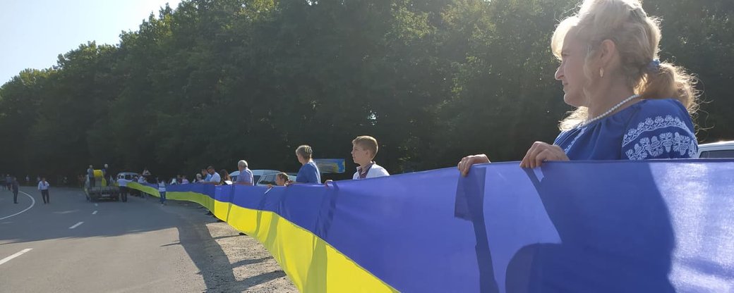В воскресенье, 22 августа, накануне Дня Государственного Флага Украины между Тернопольской и Хмельницкой областями развернули государственный флаг длиной в три километра.