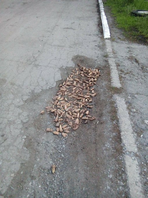 На Донбассе во временно оккупированной Горловке (Донецкая область) ямы на дорогах засыпают шишками.