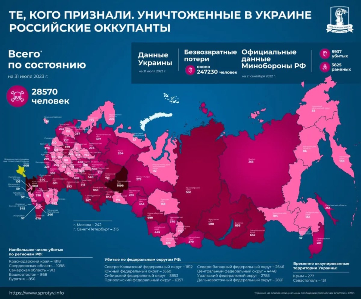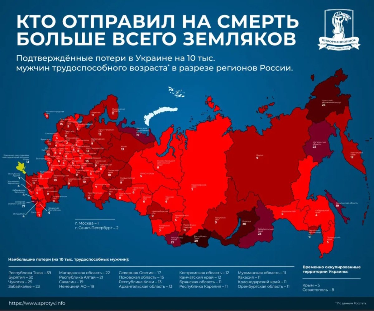 Обнародована свежая информация о том, из каких регионов Россия больше всего отправила граждан насмерть в Украину.