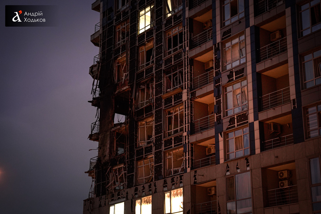 - В Печерском районе зафиксировано попадание в 22-этажный дом, что привело к разрушениям и возгоранию. Медики оказали помощь одной женщине, у которой была острая стрессовая реакция.