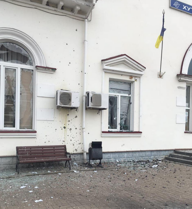 Из-за обстрелов повреждено здание вокзала, а также выбиты 15 стеклопакетов из окон.