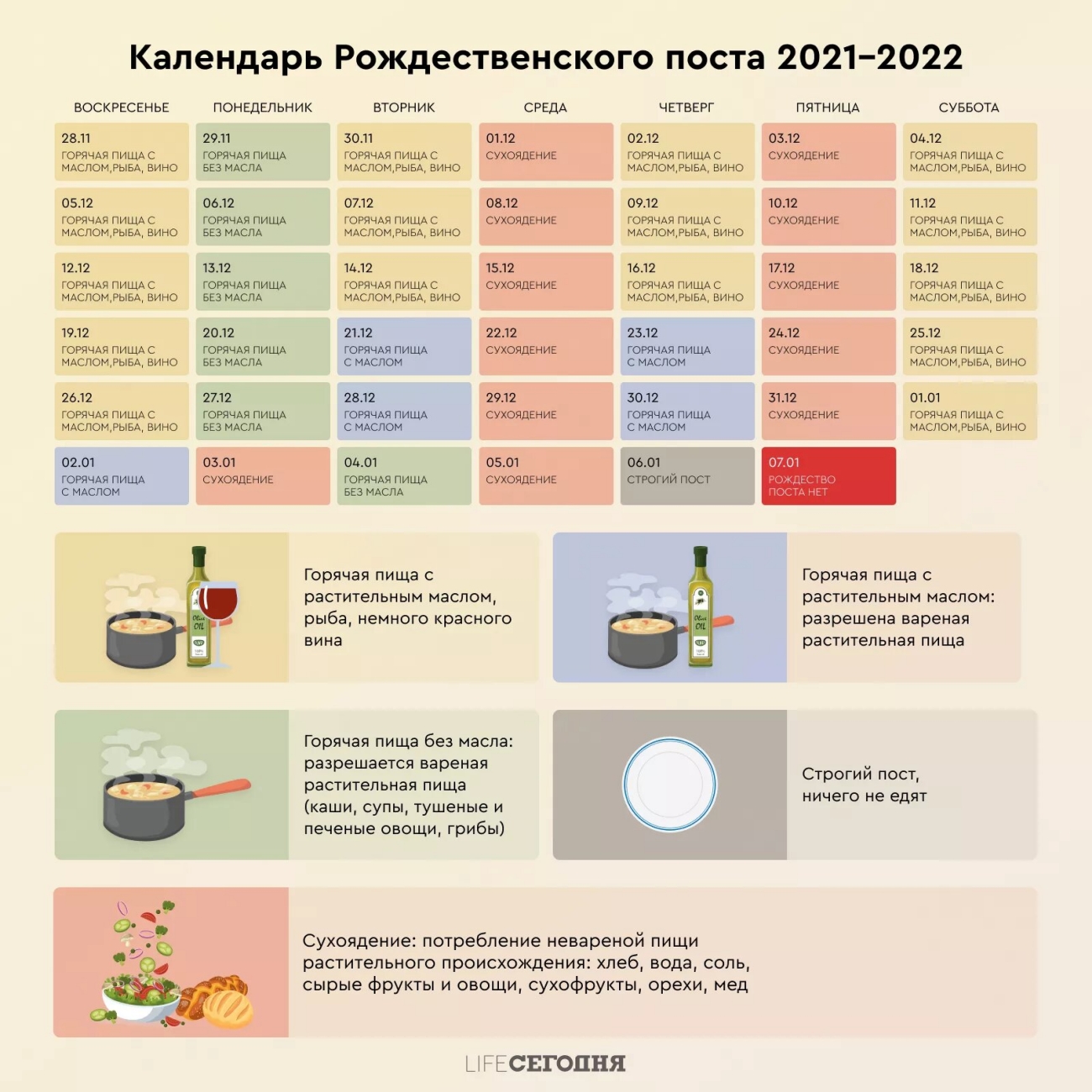 Ниже публикуем дни и продукты, которые можно употреблять в этот период.