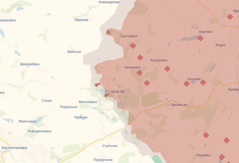 "Противник продвинулся в Часовом Яру, Торецке, Зеленом Гаю, близ Алексеевки и Андреевки-Клевцевого", – сообщили аналитики.