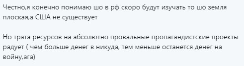 "Трата ресурсов на абсолютно провальные пропагандистские проекты радует - чем больше денег в никуда, тем меньше останется денег на войну", - отметил он.