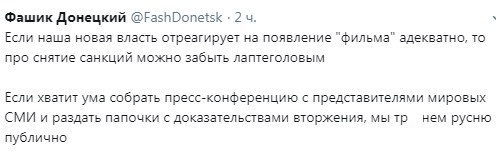Он также призвал украинцев после премьеры фильма под любыми постами относительно этого пропагандистского продукта в соцсетях оставлять комментарии с реальными доказательствами агрессии РФ.