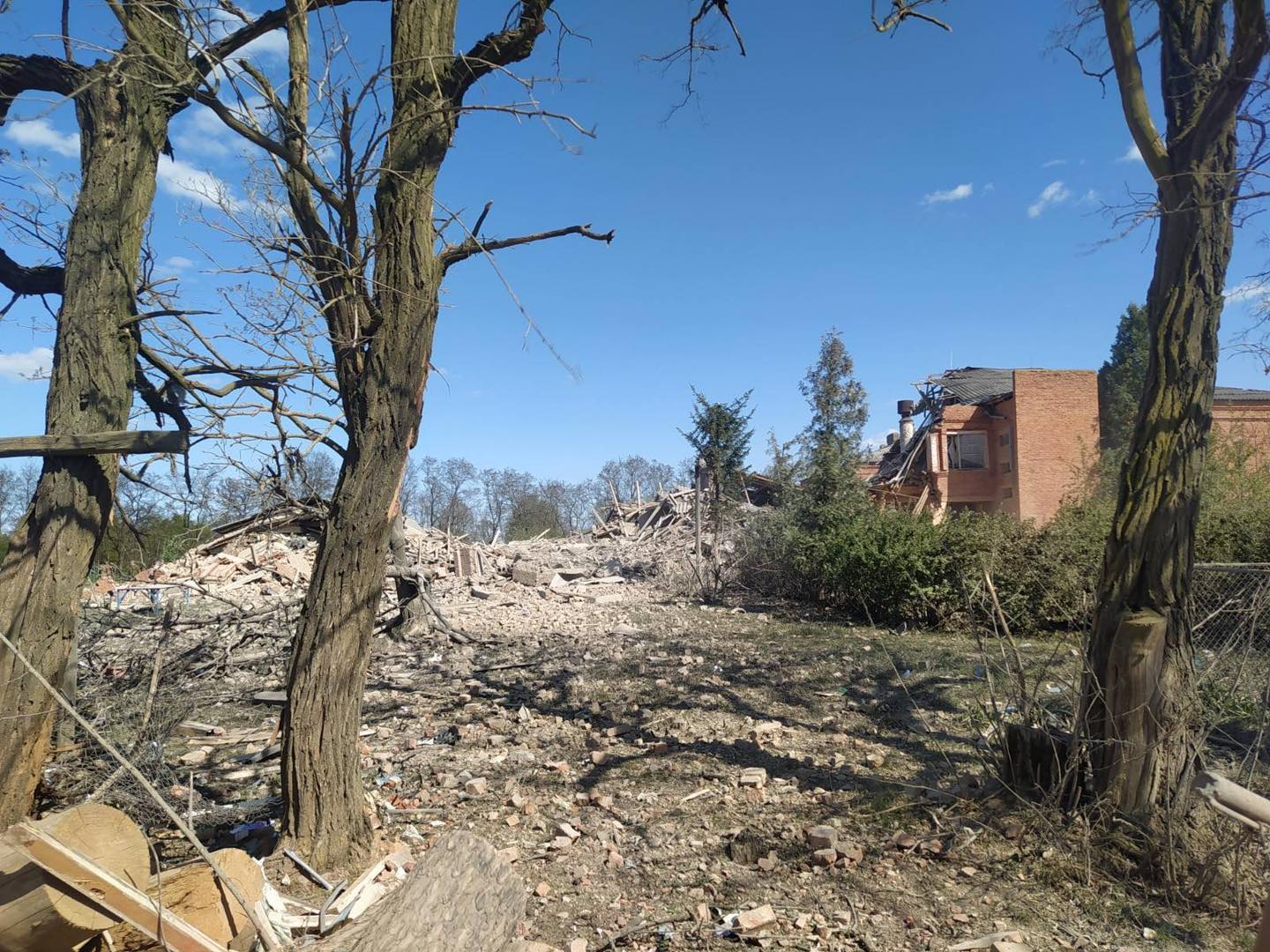 Вторая управляемая бомба упала во дворе дома. Взрыв разрушил хозяйственные постройки и сильно повредил дом.