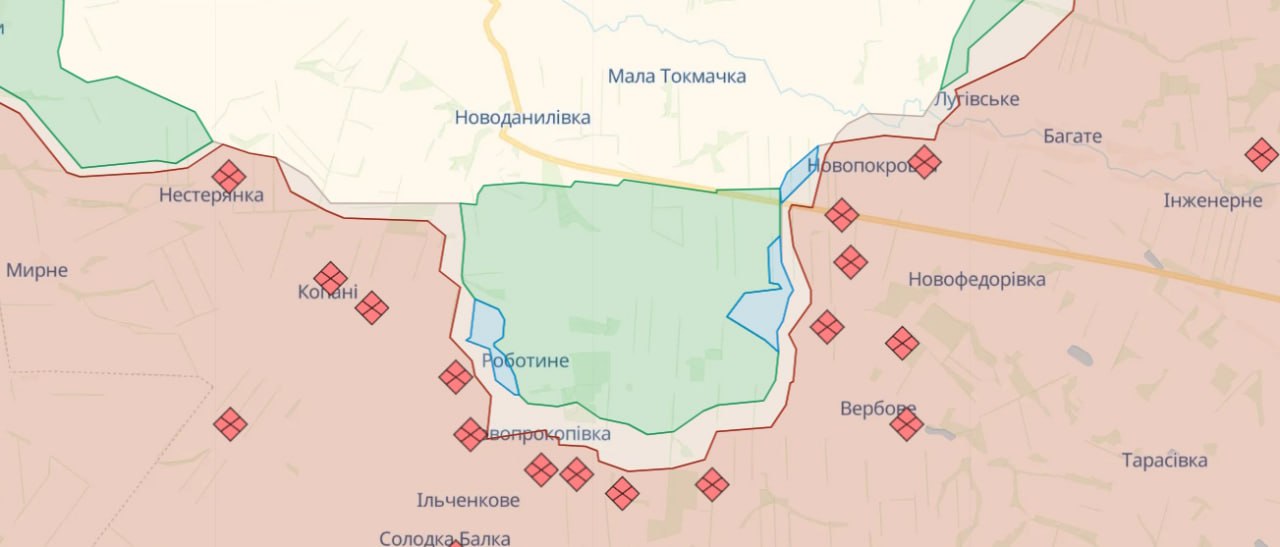 В Запорожском направлении враг с помощью авиации вел штурм в районе Работиного Запорожской области. Артиллерийским и минометным обстрелам подверглись около 30 населенных пунктов области, в том числе Малиновка, Гуляйполе, Чаривное, Работино и Пятихатки.