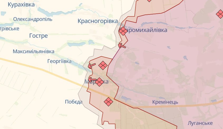 На Марьинском направлении противник с помощью авиации вел штурм в районах Марьинки и Новомихайловки Донетчины, где Силы обороны отбили 17 атак. Под вражеским артиллерийским и минометным огнем оказалось около десяти населенных пунктов области, среди которых Георгиевка, Марьинка и Новомихайловка.